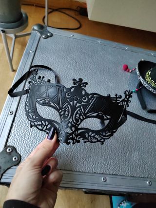 Disfraz, carnaval, halloween. Mascara negra con lazo + diadema con sombrerito, amor forrados.