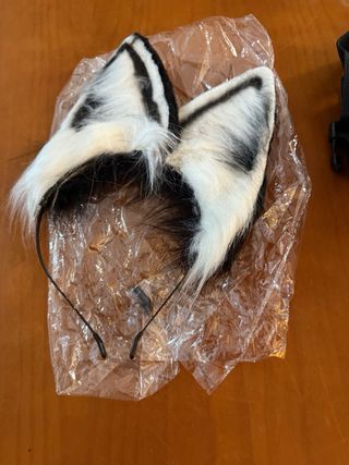 Conjunto de disfraz de cola de animal y diadema de orejas. - Diseño de zorrino. - Ideal para carnaval o eventos temáticos.