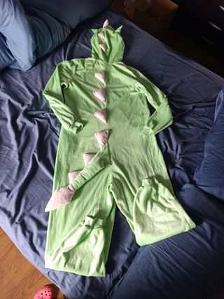 Vendo pijama calentito, completo, con forma de dragón. Con capucha y cola. Puesto queda muy chulo. Pone XS pero mi talla es la M y a mí me viene. También vale como disfraz para Carnaval. Puedes ver y probar sin compromiso