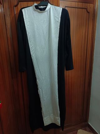 vendo disfraz de monja talla 50,hay que darle un buen lavado tiene manchas en la tela blanca,lo dio todo en el ultimo carnaval 😅,por lo demas esta bien puede tener mas vida