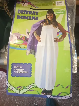 Disfraz de romana de la marca El Carnaval. Ideal para fiestas temáticas. - Incluye vestido, muñequeras y Tocado. Uno de hombre y uno de mujer talla unica pero son amplios . Cada uno 10 euros.