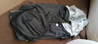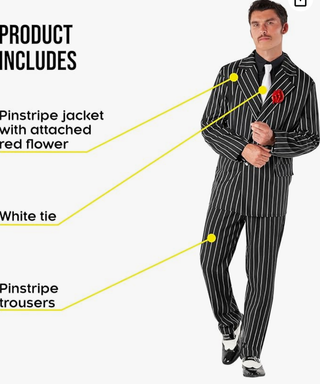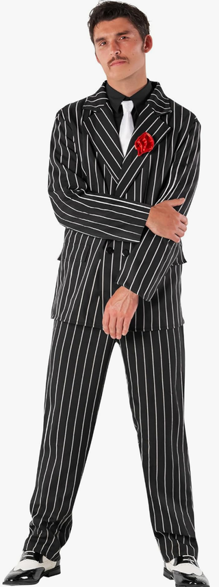 Disfraz de los años 20 para hombre: Disfraz clásico de gánster para hombre que incluye chaqueta, pantalón y corbata con el característico diseño de rayas diplomáticas de la década de 1920. Se dispone de 1 traje de tamaño L y otro de tamaño XL. No se han usado ninguna vez y se venden cada uno por 30€ (precio original 40€) Se puede incluir el sombrero por 5€ (precio original 10€)