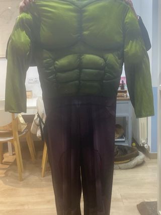 Disfraz de Hulk para adulto, inspirado en los cómics de Marvel. Este disfraz está diseñado para simular la musculatura del personaje. - Diseño muscular. - Parte superior verde y pantalones morados.