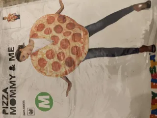 Disfraz divertido con forma de botella de ketchup, también disfraz pizza mom talla M y porción pizza talla 1-2 años En excelente estado - Diseño llamativo. - Talla M (aprox. 38-40 / 48-50).