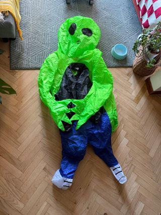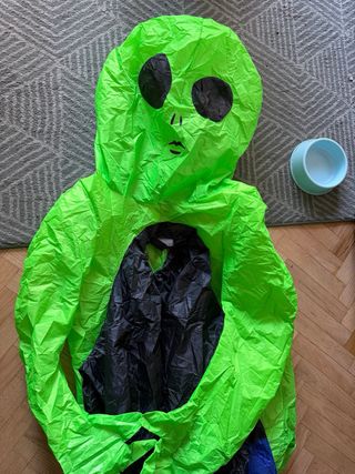 Divertido disfraz inflable con diseño de OVNI. - Tamaño L adulto. Funciona con pilas AA Se infla muy rapido y queda muy bien presentado, facil movimiento.