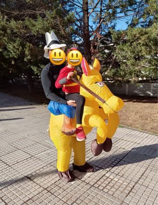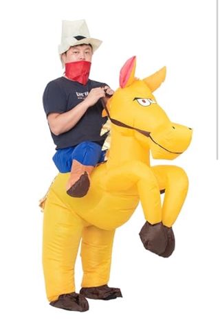 Disfraz inflable de cowboy con un divertido diseño. En perfecto estado. Para un carnaval bien divertido!