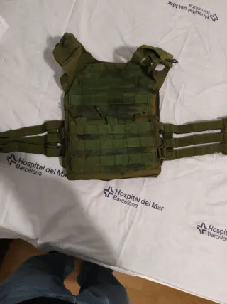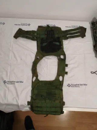 Chaleco táctico de estilo militar, ideal para airsoft o disfraces. - Diseño con múltiples compartimentos y correas MOLLE. - Cierre ajustable para mayor comodidad. -calavera "the punisher" en la espalda -usado y un poco desgastado perfecto para realismo en disfraces