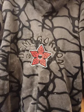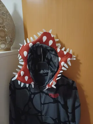 Este pijama/disfraz con capucha es perfecto para los fans de Stranger Things. Su diseño inspirado en el Demogorgon lo hace ideal tanto para dormir como para usar como disfraz. - Diseño de Demogorgon con detalles en la capucha. - Tejido suave y cómodo. - Cremallera frontal para facilitar su uso. Se puede usar de 10 a 12 años aproximadamente. 1,40 cm. Compramos para una función de teatro y éste se quedó sin estrenar. Precio no negociable.