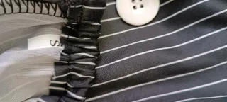 Conjunto de disfraz con estampado de rayas finas. Incluye camisa y pantalón. - Camisa con cuello. - Pantalón con cintura elástica. - Cierre de botón en la camisa.