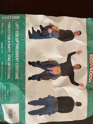 Disfraz divertido Lift You Up de Presidente Trump, perfecto para fiestas, despedidas de soltero o festivales. Crea la ilusión de ser llevado a hombros. - Talla única. - Incluye piernas falsas rellenas y cinturón ajustable. - Peso: 1350g.