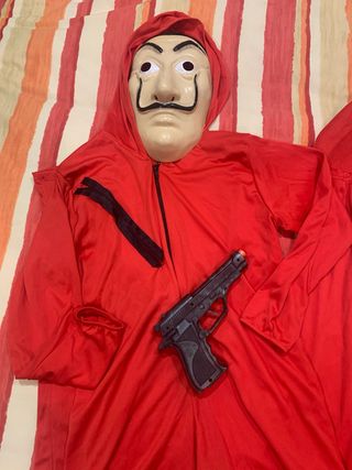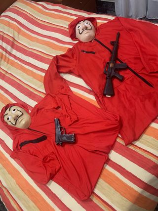 Conjunto de dos disfraces inspirados en la serie La Casa de Papel. Incluye un disfraz para adulto y otro para niño. - Disfraz de adulto. - Disfraz de niño. - Diseño inspirado en La Casa de Papel.