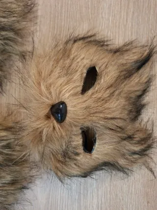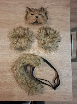 Completa tu disfraz de lobo con este set de accesorios. Usado una vez. - Incluye máscara con orejas, dos cubre-manos y una cola. - Material de pelo sintético suave.