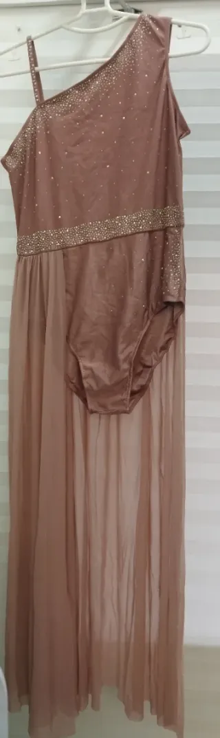 Este disfraz es ideal para actuaciones o eventos especiales. - Diseño asimétrico con un hombro. - Adornado con lentejuelas y pedrería. - Falda larga de tul.