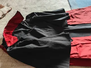 Capa reversible para disfraz, con un lado negro y el otro rojo brillante. Ideal para añadir un toque dramático a cualquier atuendo. - Diseño reversible. - Material satinado. - cierre del cuello con velcro Medidas - Altura de desde el cuello hacia abajo 110 apro - Desde la parte de arriba del gorro hacia abajo 140 cms 2 unidades En buen estado Se pueden enviar