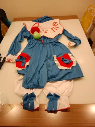 Disfraz inspirado en Pennywise, ideal para fiestas temáticas, Halloween o carnavales. Talla L incluso XL Pero hay medidas para que lo comprobeis. El disfraz sin usar, solo puesto para las fotos - Traje completo de dos piezas. - Detalles de volantes y adornos. - Incluye pompones rojos decorativos cinturon con pompo rojo.