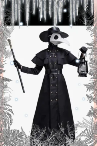 Disfraz de Dr. Peste con un diseño clásico y detallado. Ideal para eventos y fiestas temáticas, Halloween o carnaval. Incluye: - Abrigo largo negro con doble botonadura. - Cinturón negro a juego. - Máscara de pico característica. - Sombrero negro. - Bastón con empuñadura decorada. Precio en Amazon 39,90
