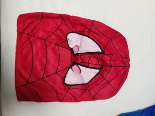 Disfraz completo de Spiderman, ideal para fiestas o eventos, solo se ha usado una vez. - Incluye traje y máscara. - Diseño clásico de Spiderman con detalles en rojo y azul. - Tejido cómodo y ligero.