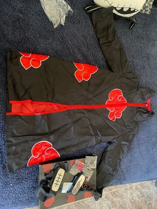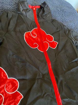 Disfraz de Naruto estilo Akatsuki. - Diseño con nubes rojas. - Cierre de cremallera frontal. - lleva incluidos complementos de colgantes, placa para la cabeza y demás