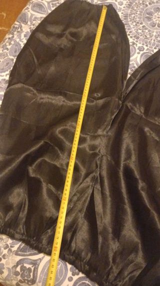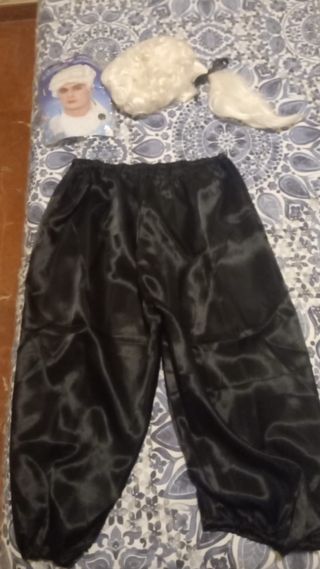 Conjunto de disfraz para carnaval. Incluye pantalón negro y accesorios. - Pantalón negro satinado. - Peluca blanca. - Las medidas son 49 de ancho y las calzas 80 de largo