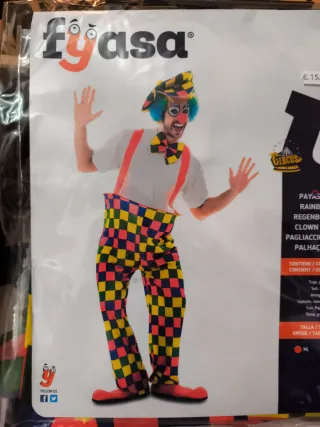 Disfraz de payaso para adulto, perfecto para fiestas temáticas o carnavales. Este traje llamativo te hará destacar.Dispongo de dos unidades. - Diseño a cuadros vibrante. - Incluye sombrero, pajarita, tirantes y pantalón. - Comodidad para moverte libremente.