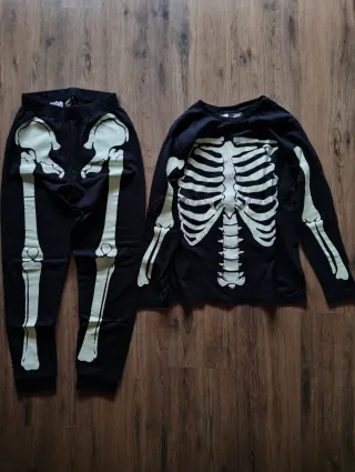 Conjunto de pijama con estampado de esqueleto que brilla en la oscuridad. Ideal para usar como disfraz o para dormir. - Camiseta de manga larga. - Pantalón largo. - Diseño de esqueleto luminoso.