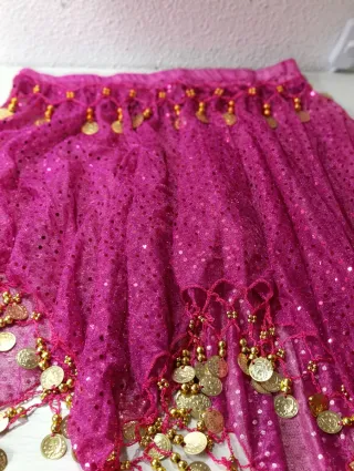 Disfraz árabe niña top y falda fucsia con monedas