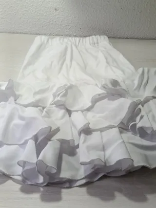 Conjunto de ballet de dos piezas. Para niña 5-6 años. Conjunto blanco niña ballet 🩰 Falda con vuelo y camiseta corta con volantes - Top con mangas acampanadas y lazada. - Falda con cintura elástica.