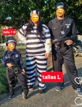 Disfraz de preso con estampado de rayas unisex, tengo los de policias de adulto y niño por si quieren disfrazarse en familia mirar en mi perfil. Tengo más disfraces en mi perfil si llevas más de 2 te hago descuento - Incluye gorro - Número 90210 impreso en el pecho.
