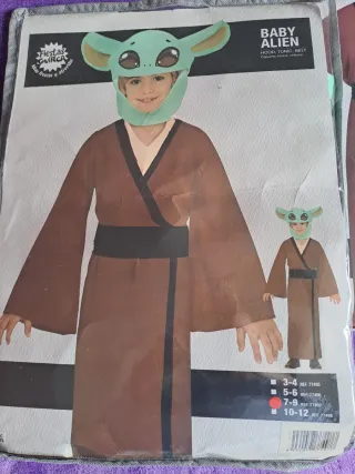 Disfraz de maestro yoda o bebé alienígena para niño y adulto. Precio por unidad. - Incluye capucha, túnica y cinturón. - Talla L adulto y 7-8 años niño (verificar medidas en la etiqueta). - Marca: Fiestas Guirca.
