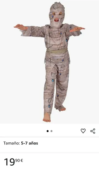 Disfraz de momia para niño/a, talla 5-7 años. Solo se ha usado una vez. - Diseño con vendas y jeroglíficos. - Incluye máscara.