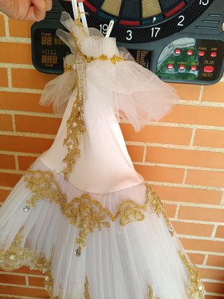 Disfraz o traje bailarina. con varias posibilidades de uso. Con toques brillantes y dorados. Muy poco uso. Para medida de 120 cm.