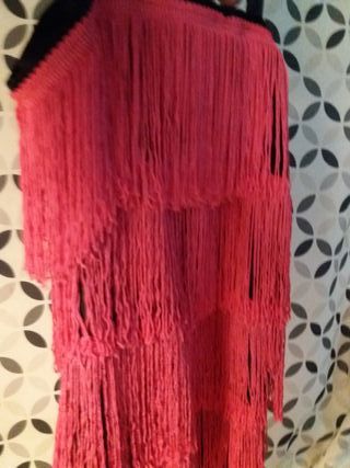 Este disfraz de cabaret presenta un diseño llamativo con múltiples capas de flecos. - Color rojo vibrante. - Diseño de flecos en cascada. - Ideal para fiestas temáticas o eventos de disfraces.