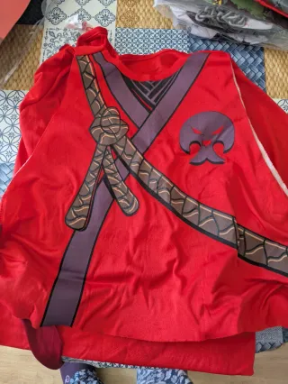 Disfraz de ninja en color rojo con detalles. - Diseño inspirado en ninjas. - Estampado de soga y símbolo. - Capa integrada.