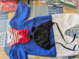 Disfraz de ratón Mickey para bebé, ideal para fiestas o eventos. - Diseño inspirado en Mickey Mouse. - Incluye gorro con orejas. - Material suave y cómodo.