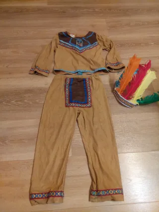 Nuevo, utilizado solo un rato un día. Disfraz de indio para hombre, talla M/L. Incluye top y pantalón. - Diseño con flecos y detalles tribales. - Incluye cinta para la cabeza.