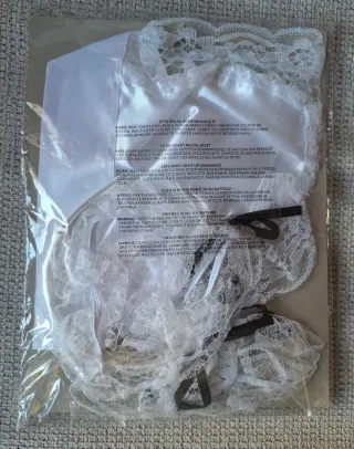 Conjunto de disfraz de camarera. - Incluye cofia, collar, delantal y muñequeras. - Referencia: 16603. - Fabricado en China. SOLO USADO UNA VEZ