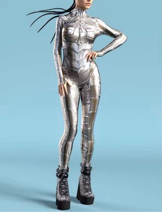 Este traje completo plateado es perfecto para fiestas temáticas o eventos de cosplay. - Diseño futurista. - Acabado metálico brillante.