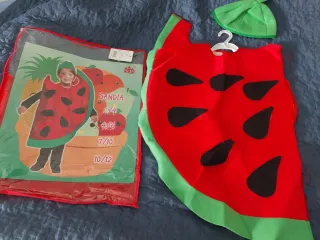 Disfraz de sandía para niños, ideal para fiestas o carnaval. Incluye el traje y un gorro. NUEVO sin estrenar. Regalo bolsa para guardarlo. Talla 4 - 5 años. Divertido y original. - Diseño de sandía. - Gorro a juego.