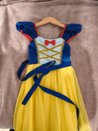 Disfraz de Blancanieves de Disney, ideal para fiestas o juegos. - Talla 3-4 años. - Diseño inspirado en el personaje. - Incluye detalles dorados y lazo azul.