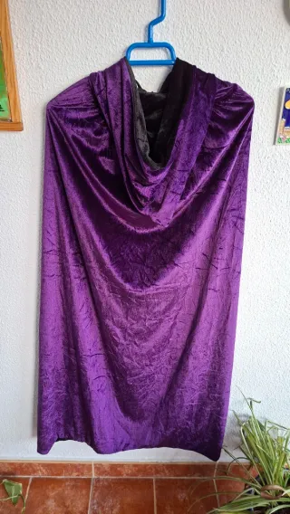 Capa en terciopelo y sombrero con hebilla dorada.Atrezzo para bruja