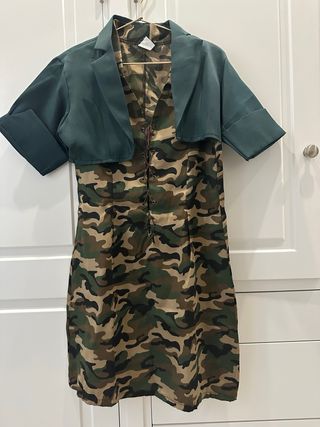 Disfraz de Guardia Civil para mujer, con un diseño de camuflaje y detalles de lazada. - Vestido con estampado de camuflaje. - Chaqueta corta a juego. - Talla única.sexi mini vestido