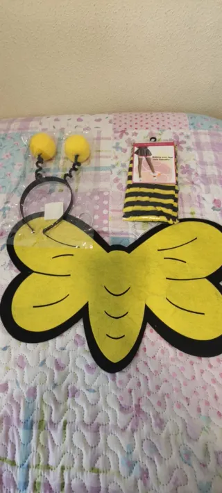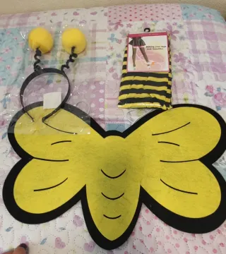 Conjunto de disfraz de abejita para niños. - Incluye diadema con antenas. - Alas de abejita. - Medias a rayas amarillas y negras. - Antenas de abeja