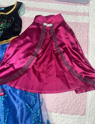 Disfraz inspirado en Elsa de Frozen, perfecto para fiestas o juegos. - Diseño con detalles brillantes. - Tejido ligero y cómodo. - Incluye broche decorativo.