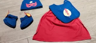 Disfraz superhéroe bebé: gorro, capa y patucos