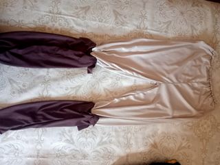 Disfraz de terciopelo morado y fucsia para niña. - Talla 10-12 años. - Mangas acampanadas. - Detalle de cordones dorados en el pecho.