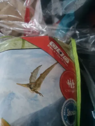 Disfraz de dragón de la marca Atosa, talla 6-12 meses. - Diseño de dragón verde con detalles naranjas y azules. - Incluye capucha con cuernos y alas. - Ideal para fiestas o disfraces.