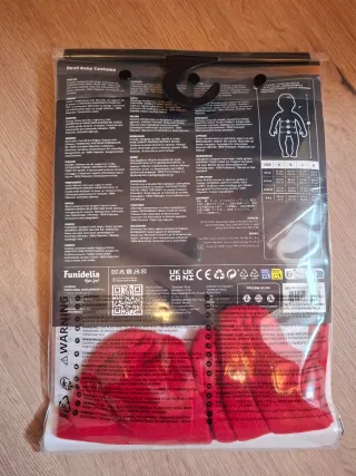 Disfraz de diablillo para bebé, ideal para carnaval, Halloween u otras celebraciones. Marca Disfraces Guirca. Talla 6-12 meses. Consta de: - Capucha con cuernos. - Alas negras. - Mono completo. Incluye bolsa para guardarlo con percha. Tengo otro disfraz igual y de la misma talla ideal para gemel@s/melliz@s (ver en mi armario y ver última foto). También tengo más disfraces en mi armario por si te interesa ahorrar en gastos de envío.
