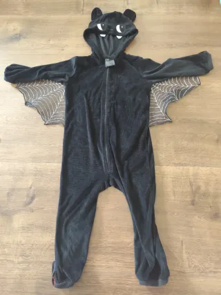 Disfraz de murciélago para niños, perfecto para fiestas o Halloween. - Mono completo de terciopelo negro. - Capucha con orejas y cara de murciélago. - Alas de murciélago con telaraña. - Cierre frontal con cremallera.