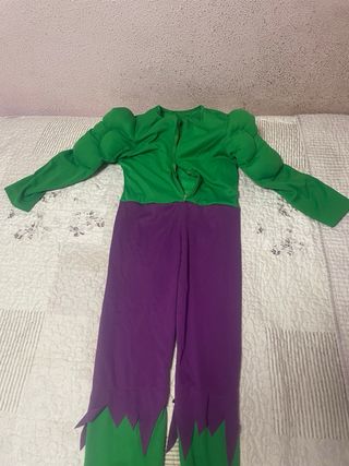 Disfraz del personaje Hulk, ideal para niños de 8 a 9 años. - Diseño inspirado en el personaje. - Incluye hombreras para un aspecto más musculoso. - Colores verde y morado característicos.