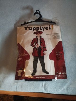 Disfraz de pirata en color rosa, talla de 7 a 9 años. Corte la etiqueta porque le molesta a mi hija. El corte del vestido es muy chulo. - Diseño con detalles de lunares y rayas. - Incluye cinturón con hebilla dorada. - Mangas abullonadas con tul.